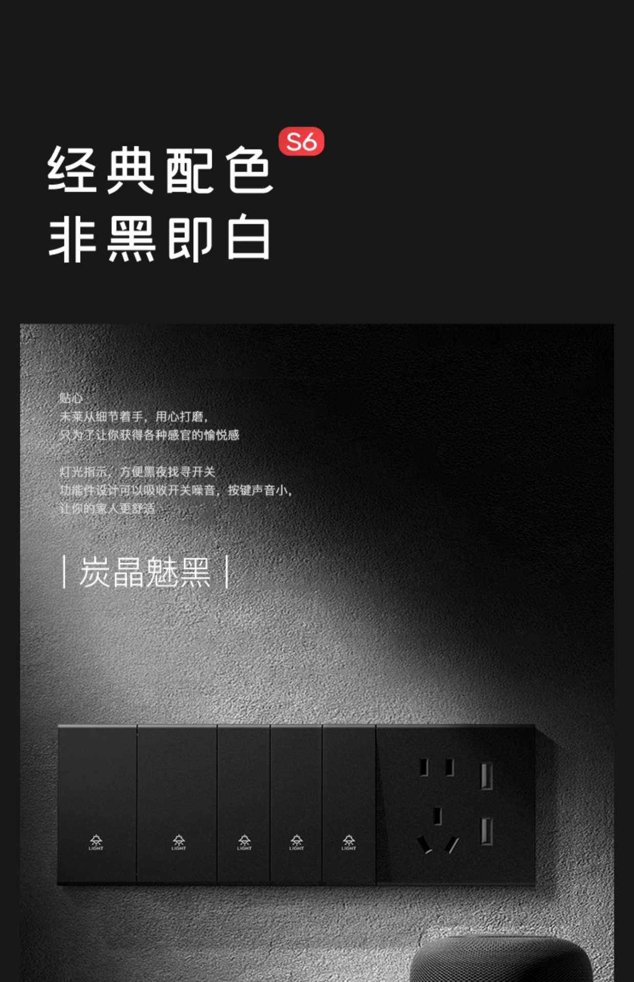 超簿开关插座面板灰色墙壁一开五孔电源面板86型家用哑光磨砂单开